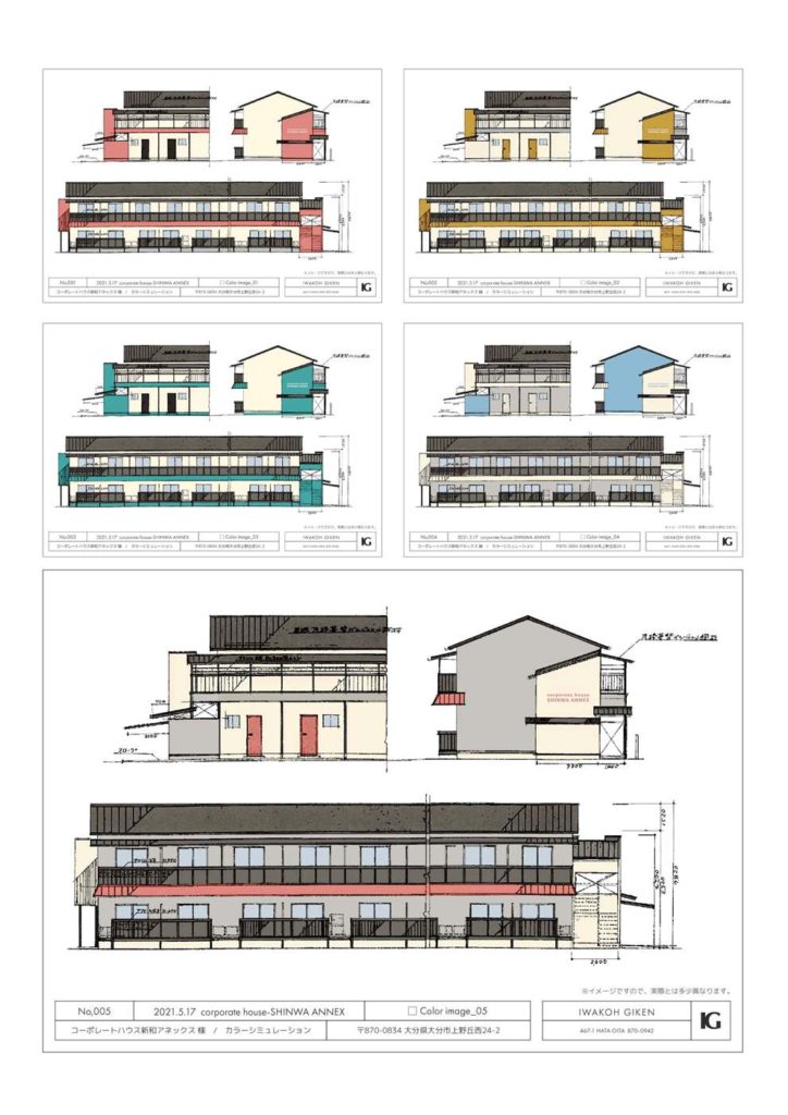 コーポ新和Annexのパースを作り、外観の検討を始めました。