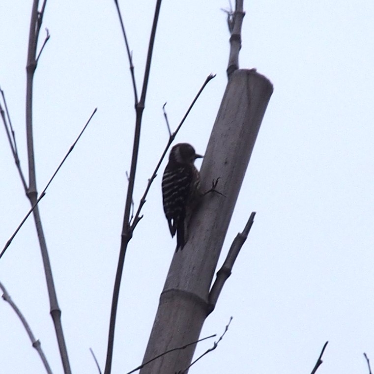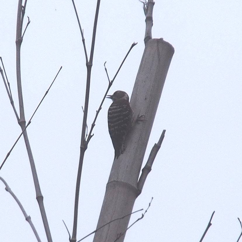裏庭の竹林から、「コツコツ」となにやら音が聞こえました。キツツキが竹をつついていました。