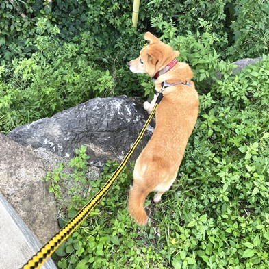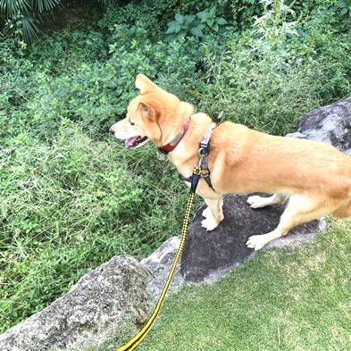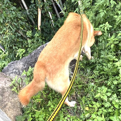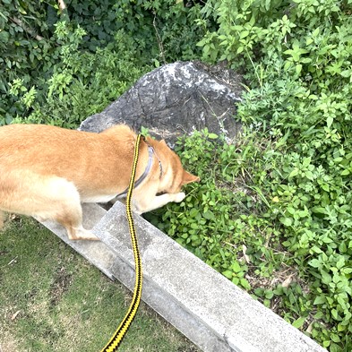 朝のおしっこタイムは、お庭の芝生ぅ~♪ & 朝食