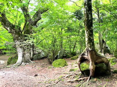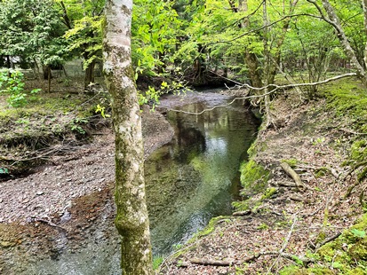 湧き出た水が、流れを作り小川になって原生林の中をくねりながら流れています。朽ちて苔むした大木、転がる巨石、そこに差す木漏れ日…まるで『ジブリの世界』のようでした。