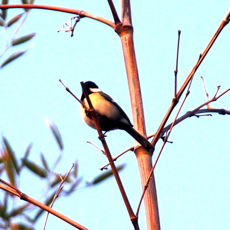 2月14日に、今年初めて、まだ拙いうぐいすの鳴き声を聞きました。写真を撮ろうと観察を続けていたら、シジュウカラがやって来ました。頭が黒く、頬が白くて、胸にネクタイしたような模様のシジュウカラです。 ウグイスの姿も取りたいなぁ。